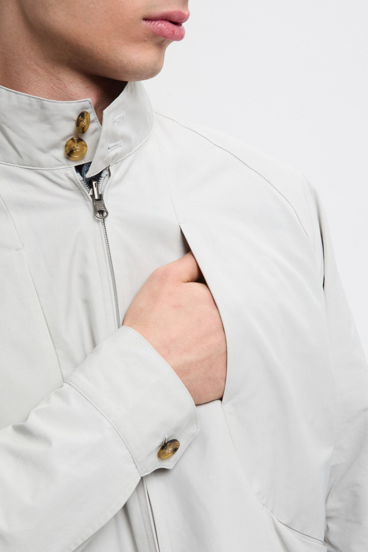 • Wasserabweisender Baracuta Cloth aus einem Mischgewebe aus Polyester und Baumwolle