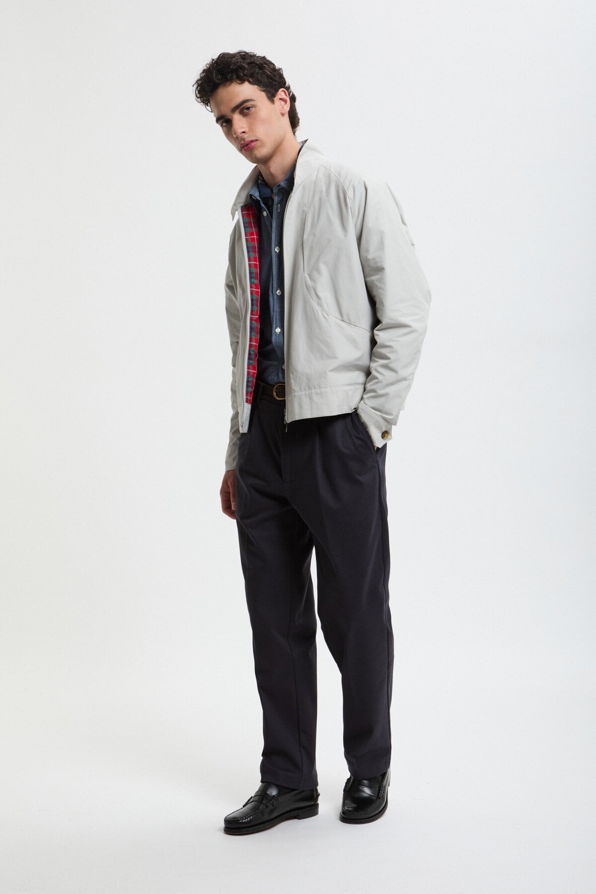 Die Baracuta x BAL G9 Jacke vereint mühelos das ikonische Erbe von Baracuta mit dem modernen Designethos von BAL. Diese mit Präzision gefertigte Zusammenarbeit ehrt die zeitlosen Elemente der ursprünglichen G9 – darunter die charakteristische Regenschirm-Rückenpasse, den Stehkragen mit Doppelknopfverschluss und das klassische Fraser-Tartan-Futter – und führt zugleich innovative Details für den modernen Träger ein.