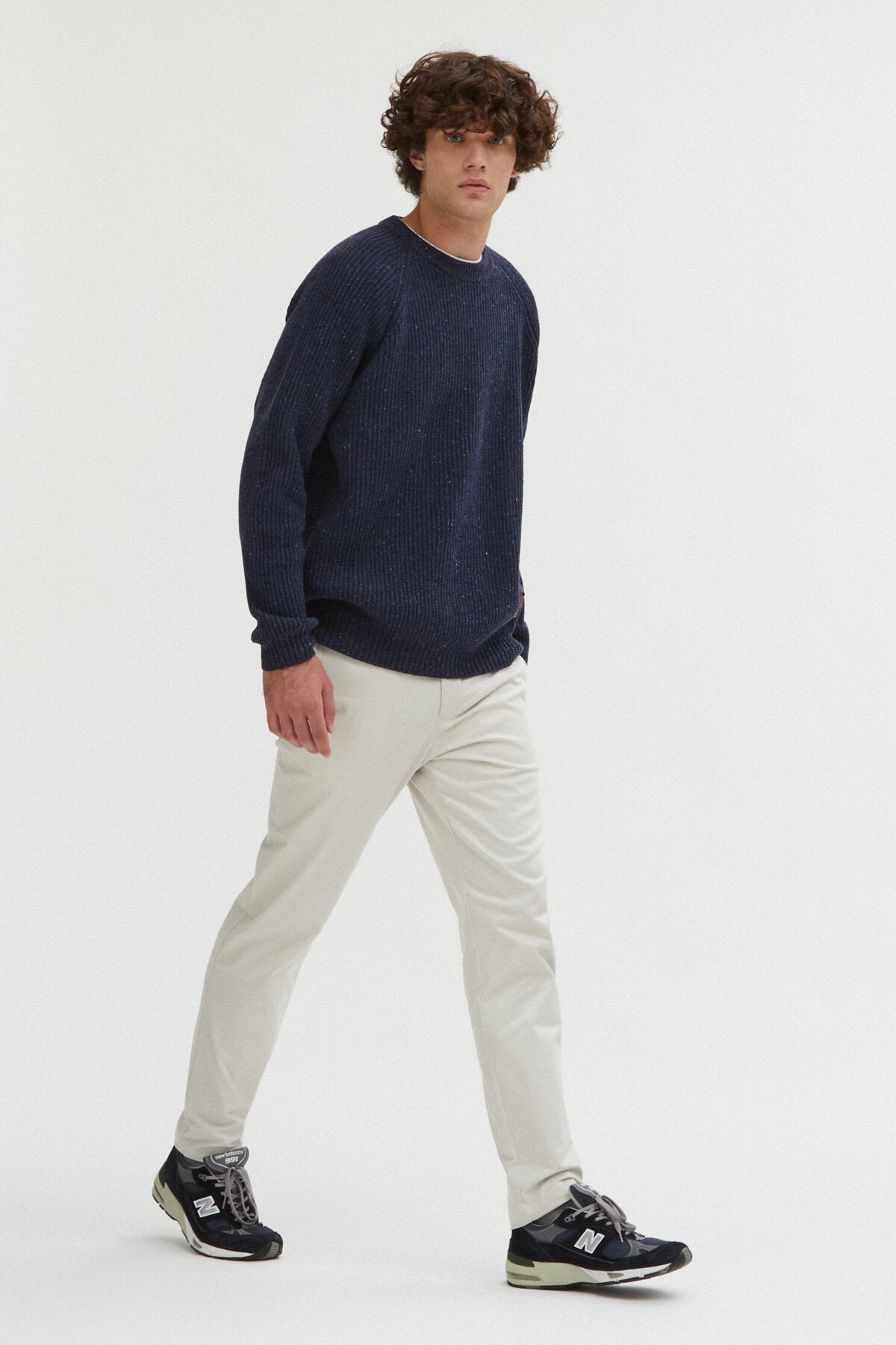 Wenn Sie in dieser Saison auf der Suche nach einem weichen Pullover sind, haben wir das Richtige für Sie. Inspiriert von den irischen Küstenfischern auf den Aran-Inseln und in Donegal ist der Rundhalspullover Fisherman ein Pullover aus recycelter Wolle. Der englische Rippenstrick ist ein reversibles Muster, das ein dickes Gewebe erzeugt und dem Garn Volumen und Elastizität verleiht. Der Rundhalsausschnitt und die Raglanärmel machen dieses Kleidungsstück bequem und funktionell. Made in Italy.