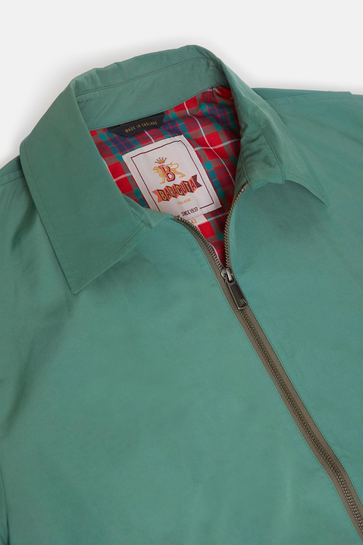 Die Baracuta G18 interpretiert einen Klassiker der späten 1960er-Jahre neu – mit klarer, moderner Kante, gefertigt aus dem ikonischen Baracuta Cloth, stolz hergestellt im Vereinigten Königreich. Die entspannte Silhouette bewegt sich dank zweier Bewegungsfalten mühelos mit, während der Kragenriegel mit Einzelknopfverschluss, der Zweiwege-Reißverschluss mit Logo und die vom Blouson-Design der 1970er inspirierten Taschen für einen unverwechselbaren, zugleich authentischen Look sorgen – funktional und ganz ohne Schnörkel. Vollständig mit dem charakteristischen Fraser-Tartan gefüttert, ist die G18 sowohl für die Stadt als auch für das Land gemacht. Mehr als nur eine Neuauflage: Ein bewusstes Designstatement. Jedes Detail steht für den Dialog zwischen Tradition und Moderne, Funktionalität und Stil: Ein Ausdruck von Baracutas anhaltender kultureller Relevanz.