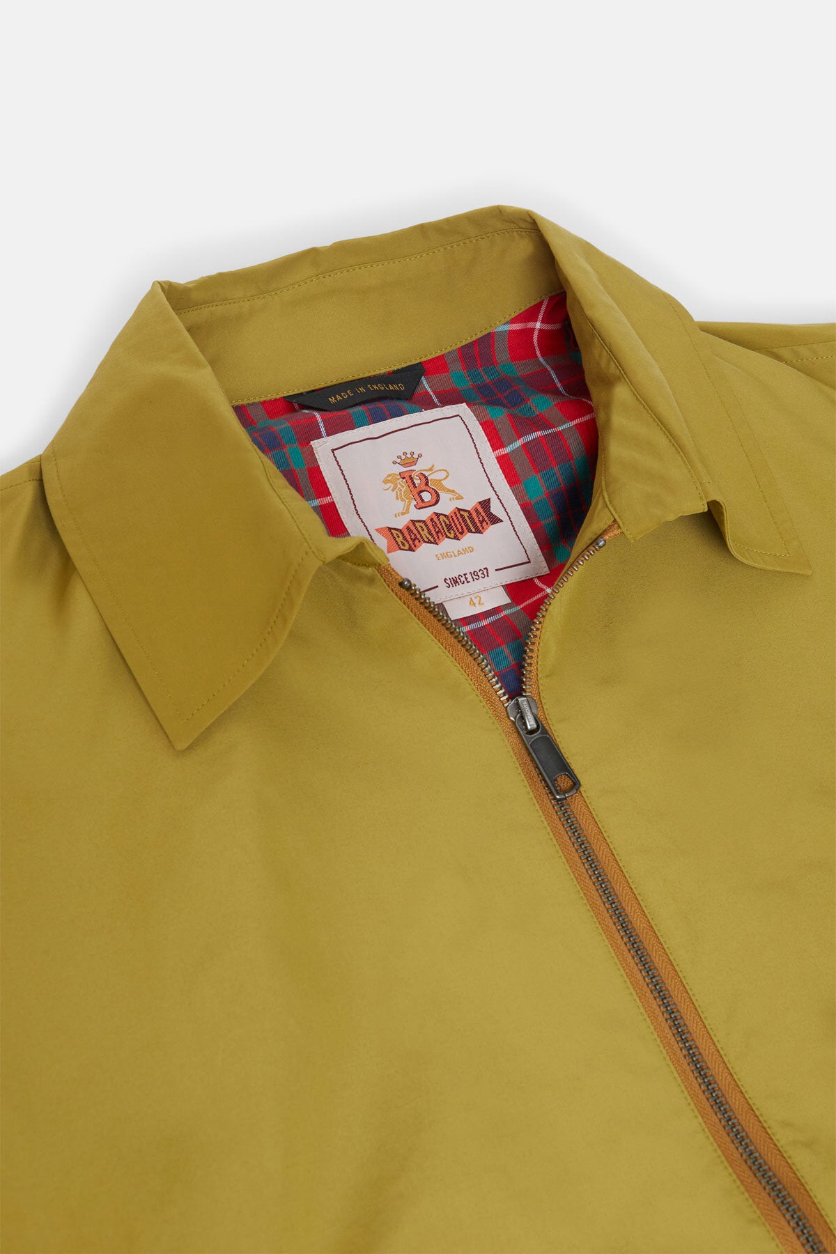 Die Baracuta G18 interpretiert einen Klassiker der späten 1960er-Jahre neu – mit klarer, moderner Kante, gefertigt aus dem ikonischen Baracuta Cloth, stolz hergestellt im Vereinigten Königreich. Die entspannte Silhouette bewegt sich dank zweier Bewegungsfalten mühelos mit, während der Kragenriegel mit Einzelknopfverschluss, der Zweiwege-Reißverschluss mit Logo und die vom Blouson-Design der 1970er inspirierten Taschen für einen unverwechselbaren, zugleich authentischen Look sorgen – funktional und ganz ohne Schnörkel. Vollständig mit dem charakteristischen Fraser-Tartan gefüttert, ist die G18 sowohl für die Stadt als auch für das Land gemacht. Mehr als nur eine Neuauflage: Ein bewusstes Designstatement. Jedes Detail steht für den Dialog zwischen Tradition und Moderne, Funktionalität und Stil: Ein Ausdruck von Baracutas anhaltender kultureller Relevanz.