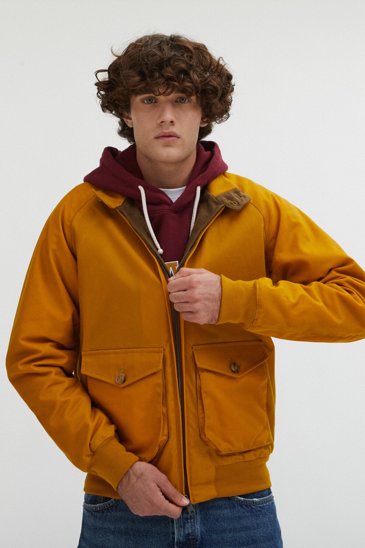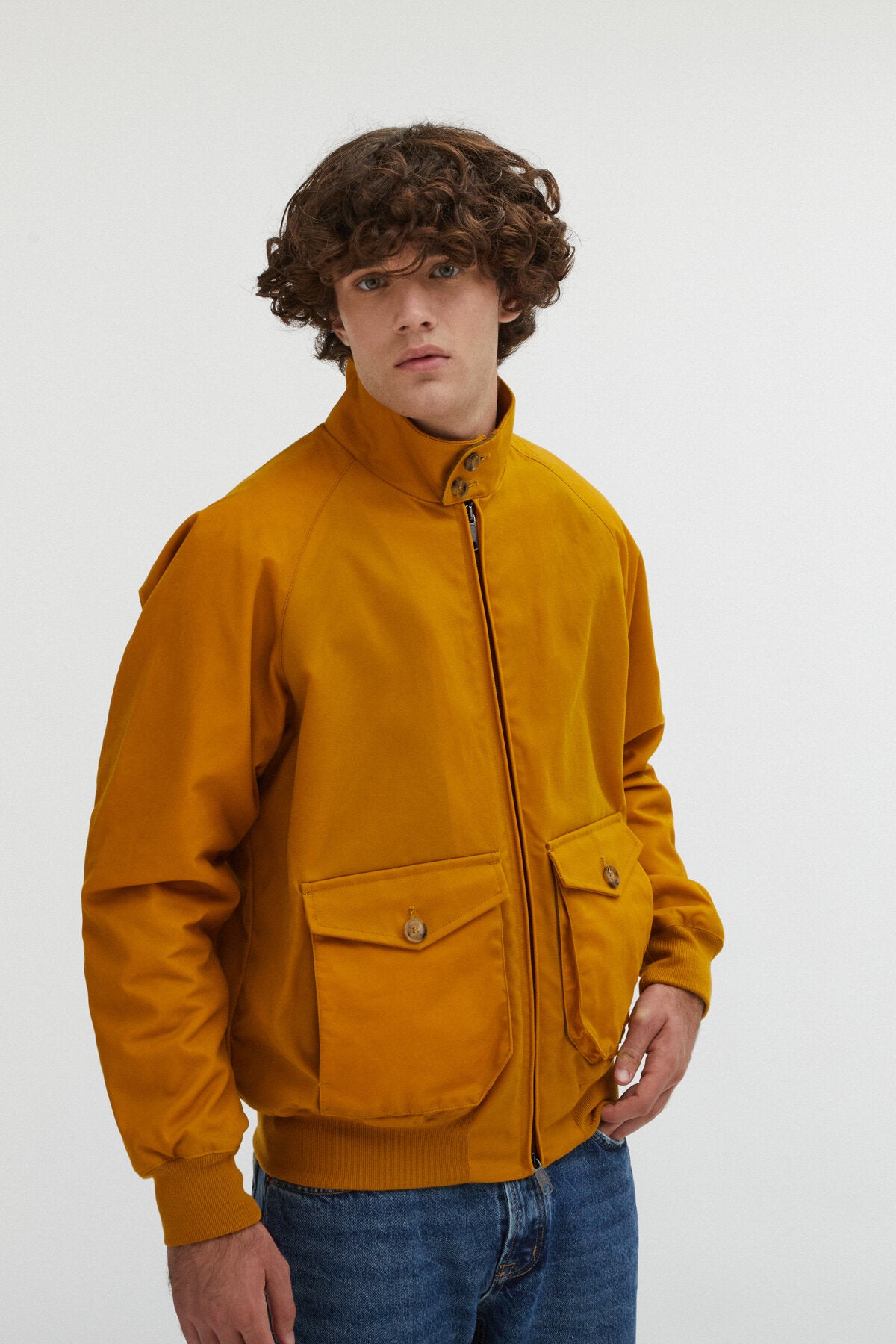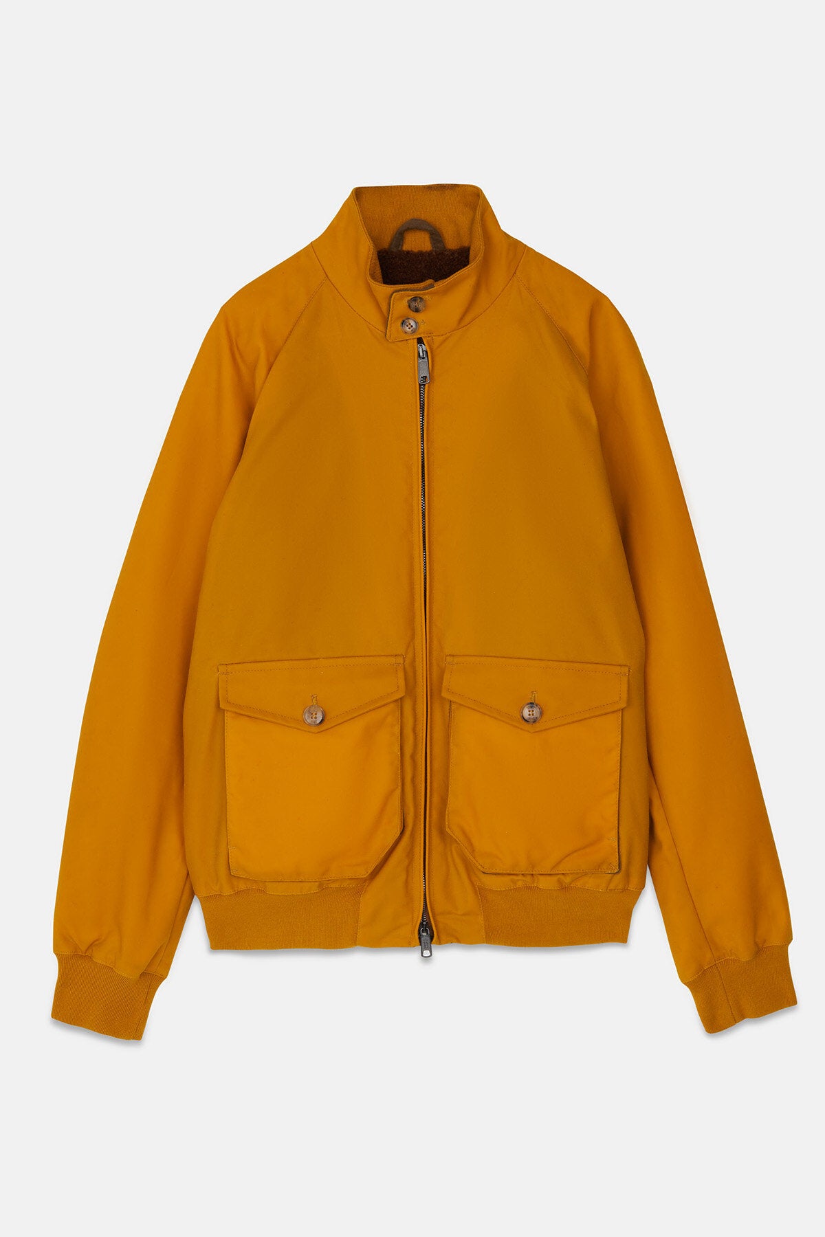 • • Baracuta-Kragen mit zwei Knöpfen und gerippter Innenseite