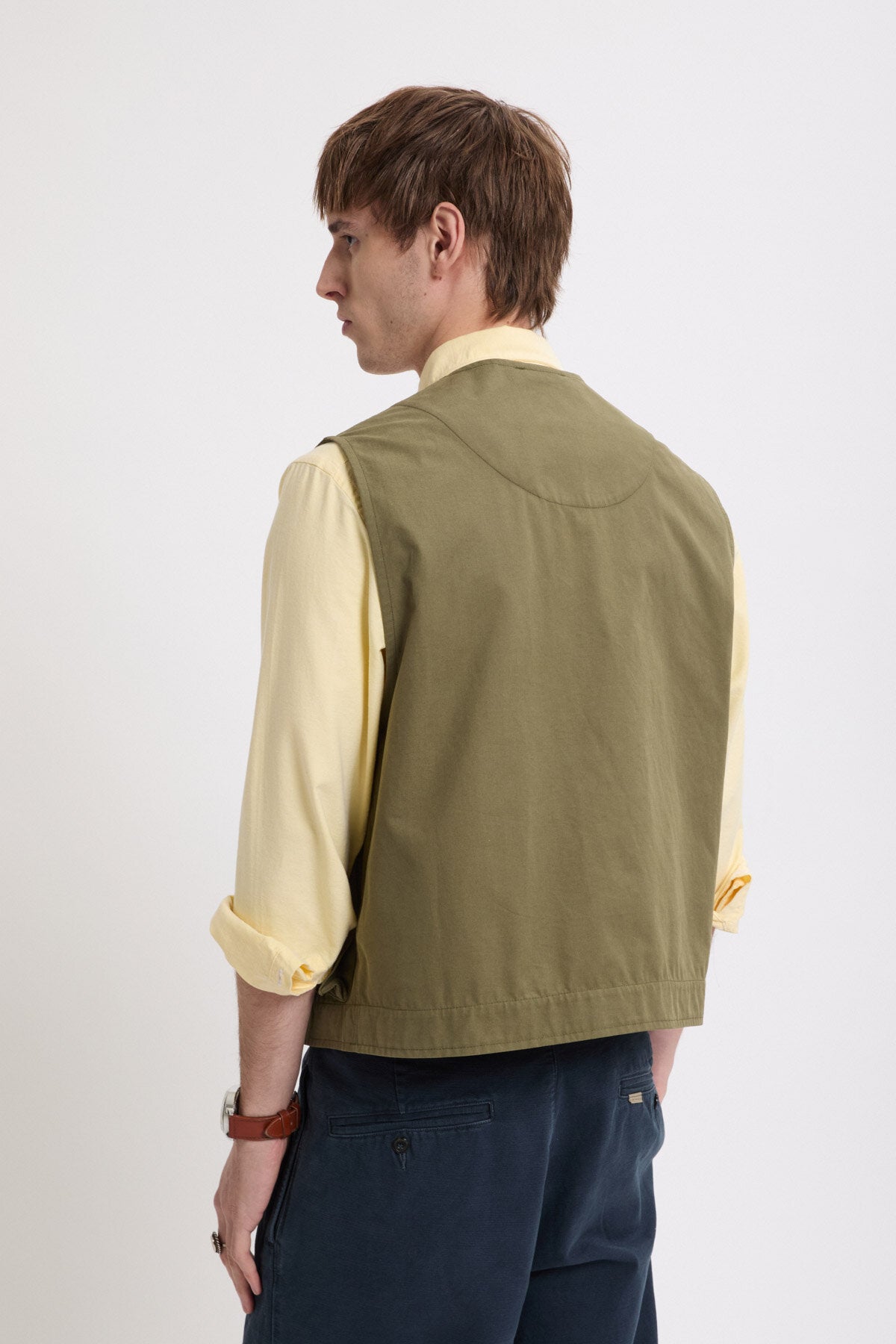 • Die Sailing Cargo Vest besteht aus 100% Baumwollpopeline – einem leichten, festen Gewebe, das für seine glatte Oberfläche und seinen strukturierten Fall geschätzt wird. Popeline behält in jeder Falte ihre Form und verleiht der Weste ein sauberes, fast maßgeschneidertes Erscheinungsbild, ohne die Bewegungsfreiheit einzuschränken. Mit funktionalen Details gestaltet, verfügt das Modell über zwei rechteckige Brusttaschen sowie großzügige aufgesetzte Taschen mit Patten und Knopfverschluss. Diese Weste lässt sich ideal über Hemden, T‑Shirts oder Strickwaren tragen.