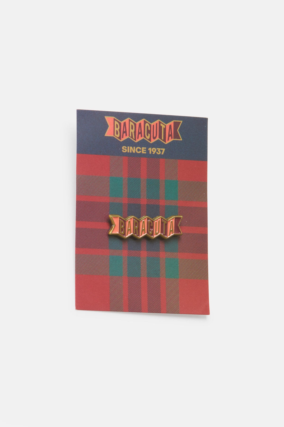 La spilla Concertina è impreziosita da uno dei loghi più noti di Baracuta.