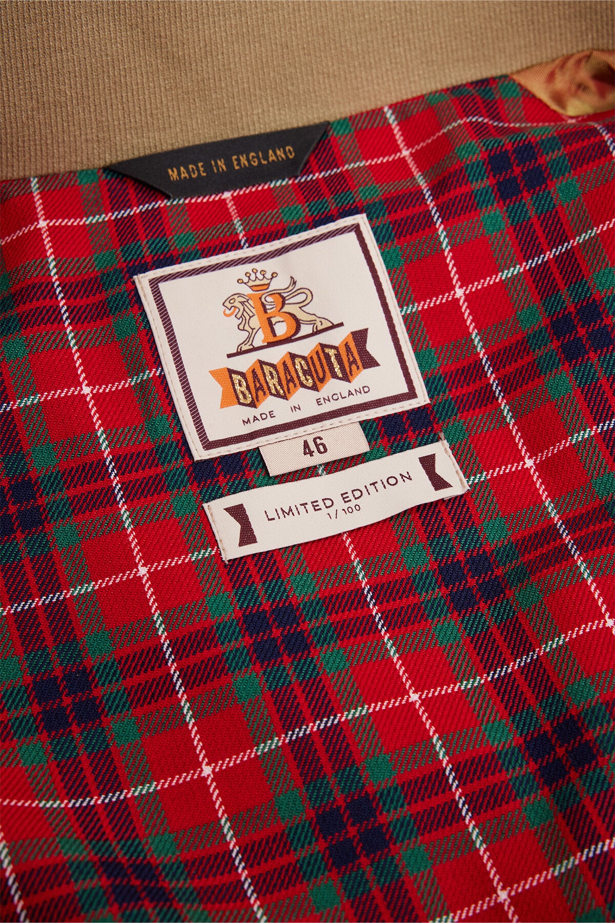 Ognuna delle 100 giacche numerate incarna il nostro impegno per la tradizione e l'artigianato, segnandola come un pezzo di storia Baracuta. Realizzata nel Regno Unito.