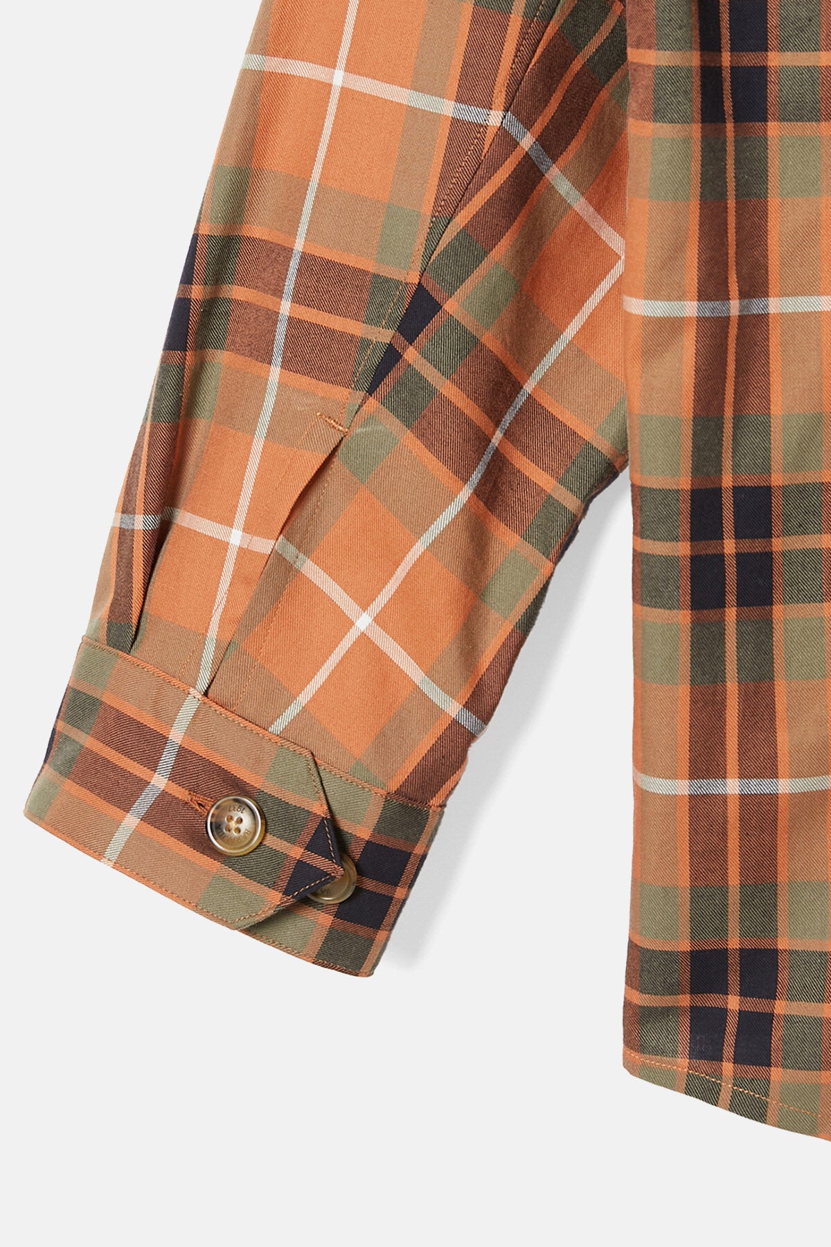 Il colletto nel tipico stile britannico sfoggia un design leggermente più ampio, mentre i polsini si ispirano a quelli dell'iconica giacca G4 di Baracuta e sono impreziositi da due bottoni che conferiscono al capo un’allure più fresca. Le tasche con cuciture laterali, compresa una piccola tasca nascosta per riporre le etichette, regalano alla camicia un pizzico in più di praticità. Completano il tutto un passante posteriore in tessuto e l'orlo leggermente arrotondato.