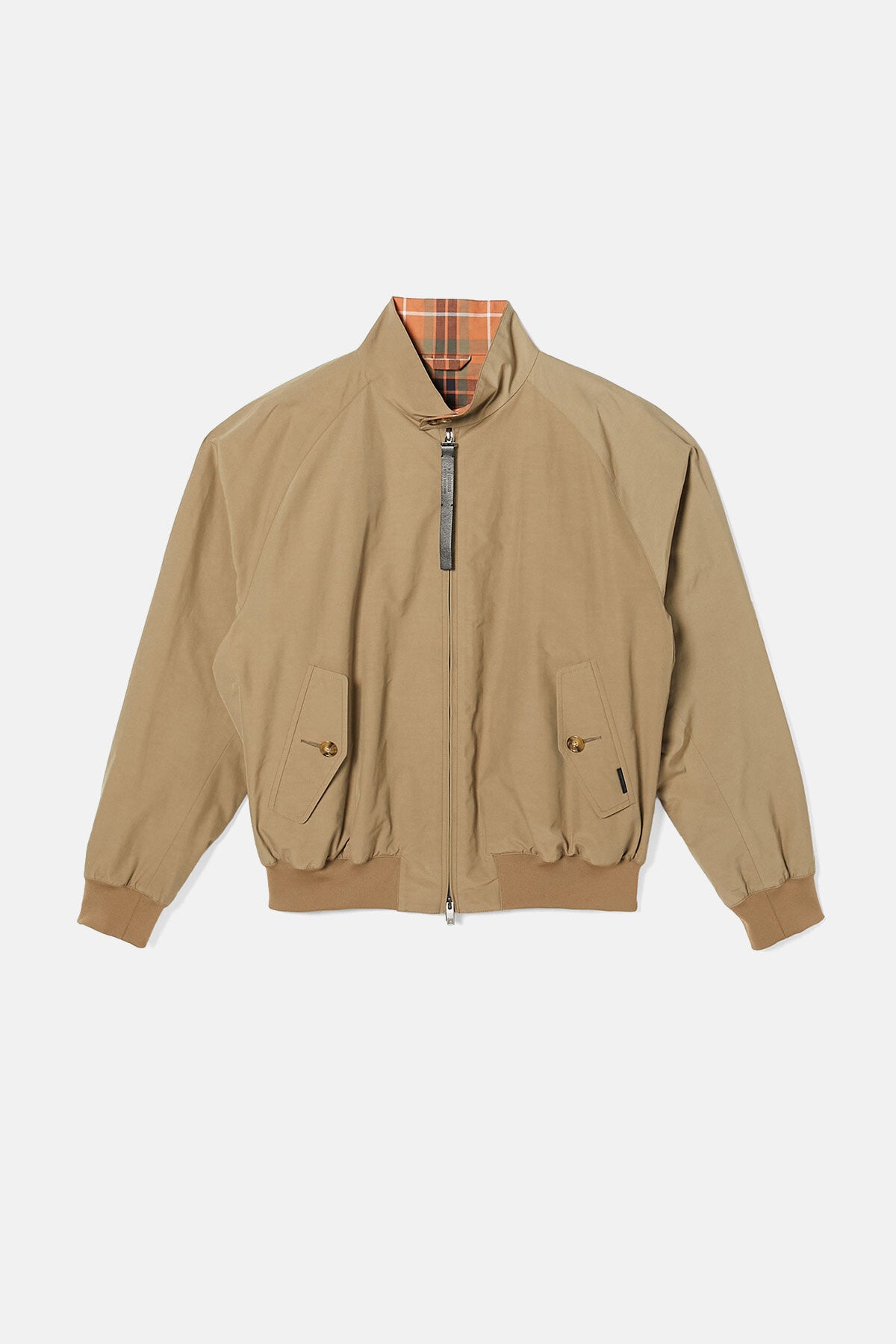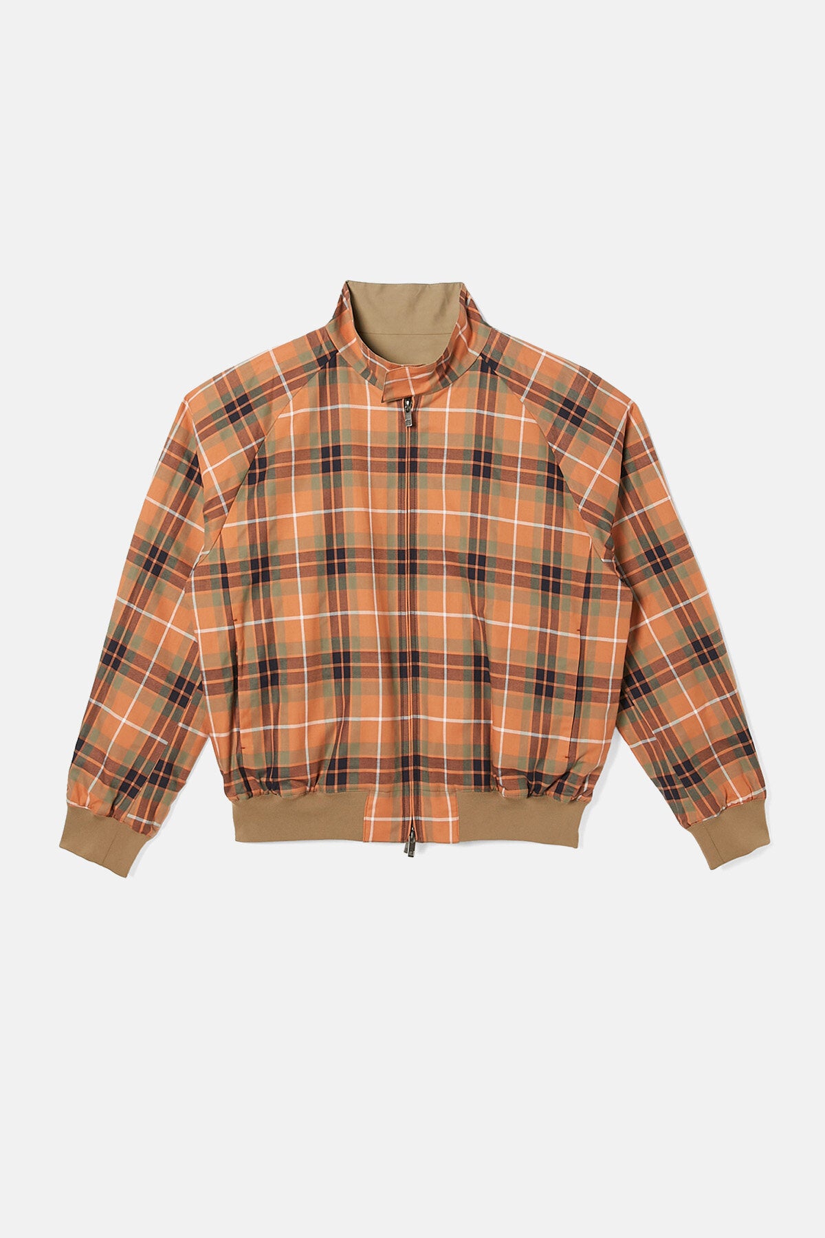 Questo capospalla completamente reversibile offre due look in uno ed è contraddistinto da un'esclusiva rivisitazione del classico motivo a quadri di Baracuta. L'orlo a costine ispirato alle tute da ginnastica vintage è stato rinforzato per donare al modello un tocco di eleganza, mentre lo scollo più largo lascia intravedere la fodera al di sotto. I dettagli contano: la chiusura a zip frontale con doppio cursore presenta l’inconfondibile linguetta in pelle di N.Hoolywood con logo inciso, oltre ai bottoni originali di Baracuta. La chiusura presenta all’interno un'ingegnosa cucitura di Baracuta in filo di aquilone per evitare che il cursore si impigli: perché sono le piccole cose a fare la differenza. Inoltre, sotto la costa posteriore sul lato a quadri è presente una minuscola tasca nascosta in cui riporre le etichette e una targhetta con doppio logo all'interno della tasca.