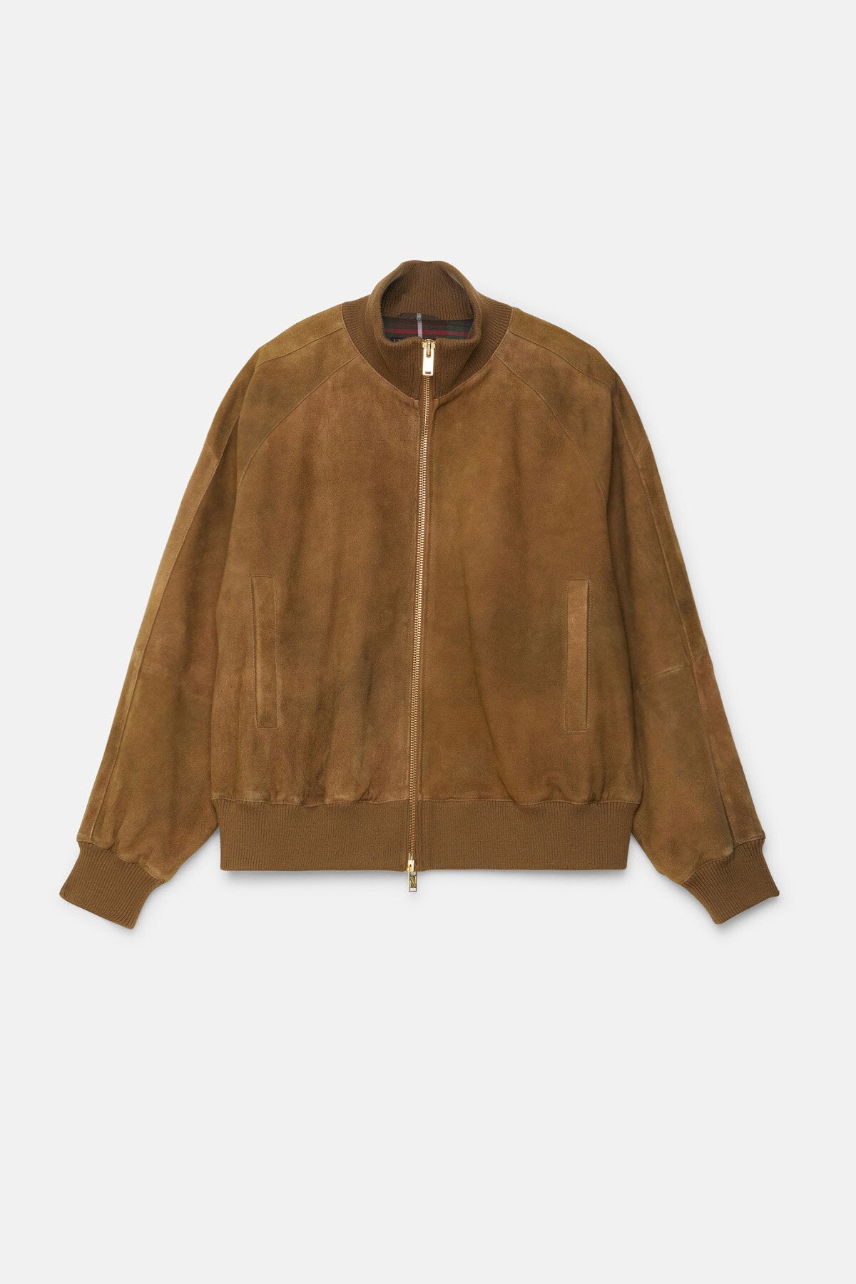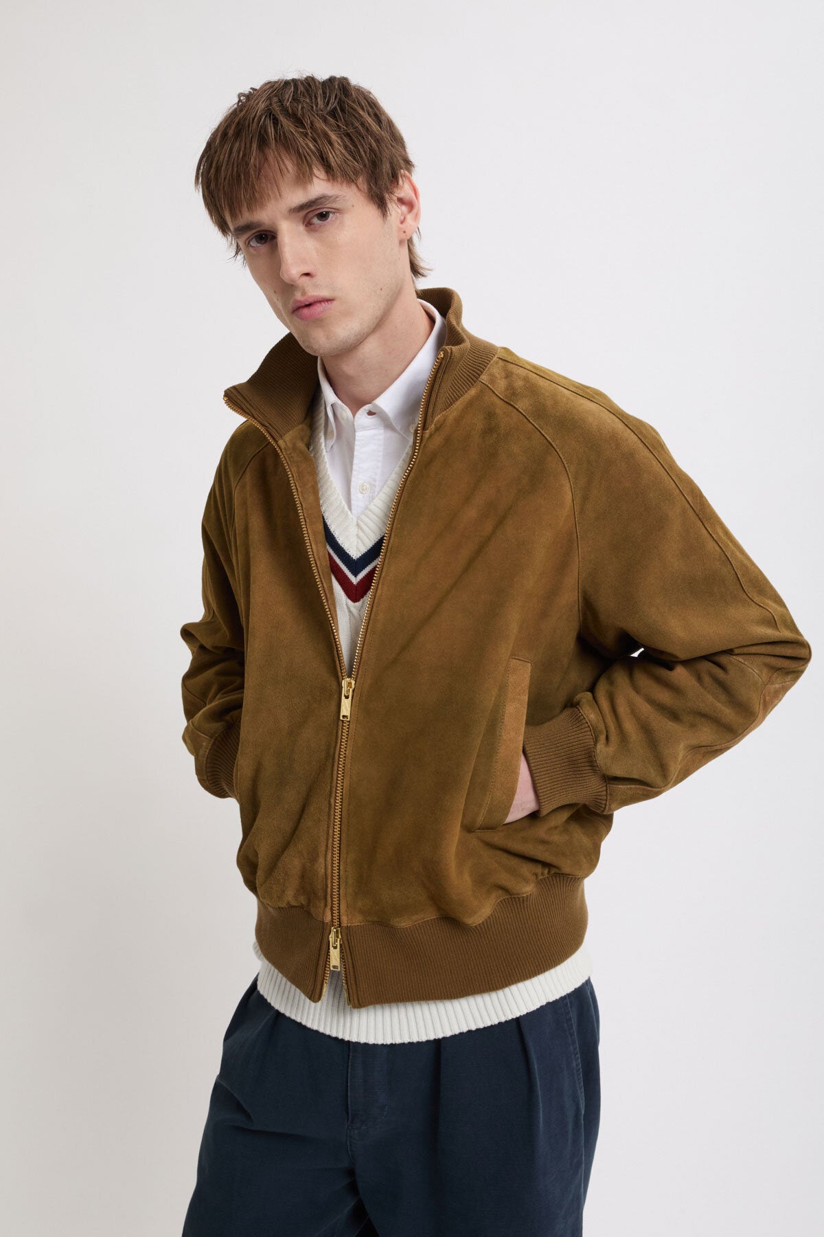 • The Antique Suede Track Jacket is made from 100% carefully selected suede, treated to create a subtly worn-in, vintage finish that highlights the natural quality of the leather. Designed with raglan sleeves and elasticated ribbed collar, cuffs, and hem, it allows ease of movement and a clean, tailored fit. Every detail is thoughtfully considered to combine functionality with lasting construction.