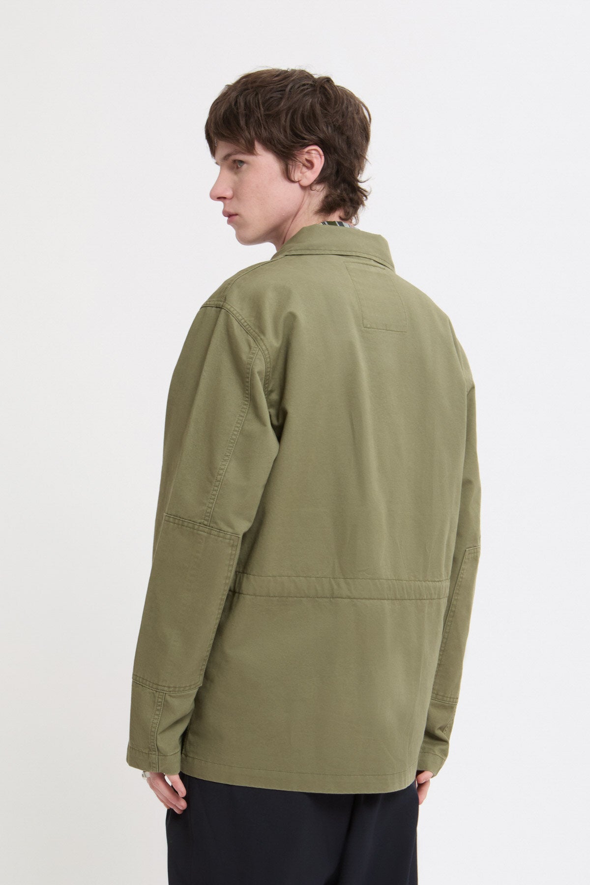 • The Twill Field Jacket is crafted from 100% cotton twill, a fabric celebrated for its distinctive diagonal weave that combines strength with softness. This structure not only gives the jacket subtle texture but also allows air to circulate, making it lightweight and breathable and ideal for layering across seasons.
